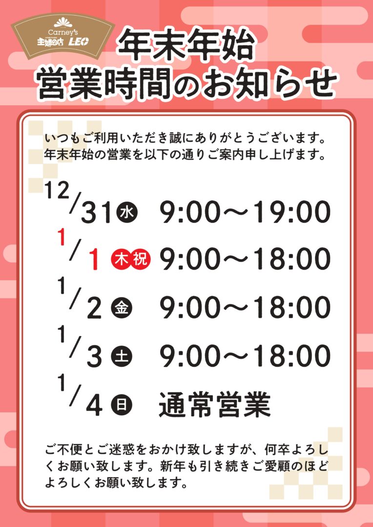 NEWS ニュース 2025.12.29 お知らせ 年末年始の営業スケジュールについて(福王台店・長浦店・大網店・岬店) この記事をシェアする 前の記事 2025.12.29 2025年12月1日(月)より福王台店・長浦店・大網店・岬店において「肉処 大久保」の精肉が販売されます!! 次の記事 2025.12.29 年末年始の営業スケジュールについて(誉田店) ニュース一覧へ戻る